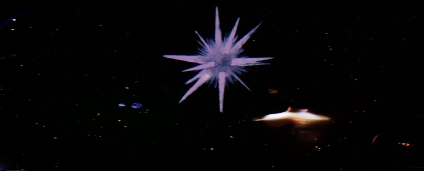 As the infant Kal-El’s rocket ship travels to Earth, it’s a very quick couple of notes. There is a brief reference to alternating shots indicating the passage of time, but there are no references to Jor-El and his audio lessons as in the final film. All in all, it seemingly takes only a moment or two for the journey to occur, not the two- or three-minute sequence depicted in the film itself.