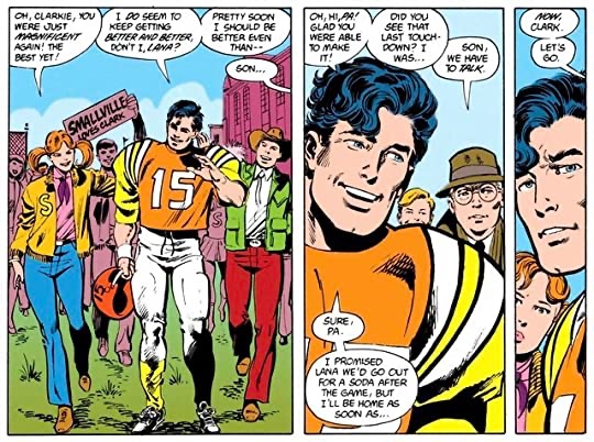 It’s then that Puzo makes a sharp turn in Clark’s personality, as the athletic director and several coaches try to figure out why he doesn’t want to pursue athletics any further. He gives no reason why, but we as the readers and viewers can only conclude that he is growing more aware of his superhuman abilities, and his adopted father has been keeping him in check. As Jonathan Kent says in the final film, “One thing I do know, son, is that you are here for a reason. I don’t know whose reason or what the reason is… but I can tell you one thing. It’s not to score touchdowns.”