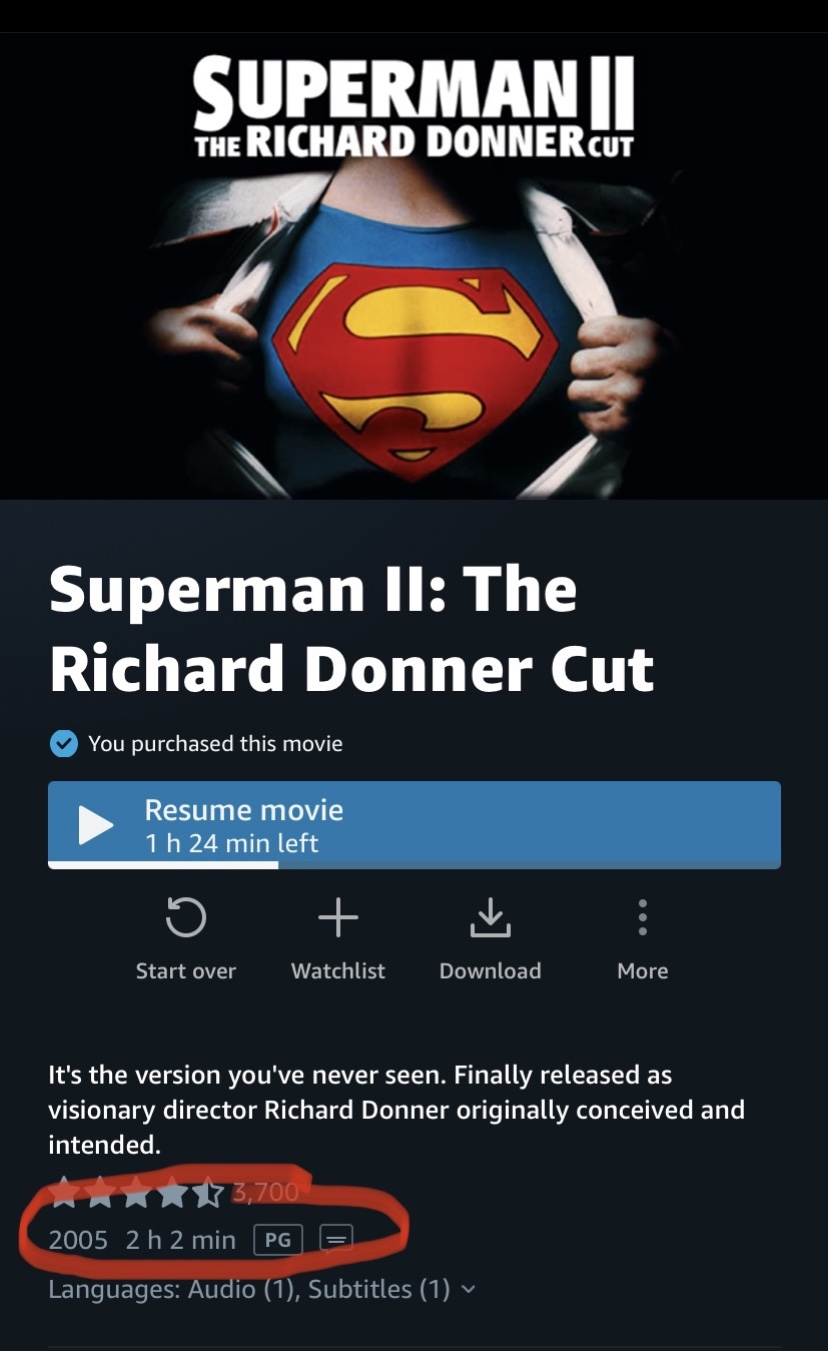 So this morning I went onto Amazon Prime to further look at any differences in the Superman movies from its current HD streaming versions as opposed to the 2011 Blu-ray set and the 2006 DVD releases, and I noticed one very important change in the releases…