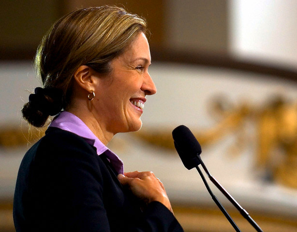 09 Aug 2005, Columbus, Ohio, USA — epa000499740 (FILES) dated 21October 2004. Photo shows Dana Reeve, widow of actor Christopher Reeve, speaking at a campaign stop for Democratic presidential nominee John Kerry in Columbus, Ohio. Reeve announced Tuesday 09 August, 2005 that she had been diagnosed with lung cancer. A spokeswoman for the Christopher Reeve Foundation, of which Dana Reeve is chairwoman, said that Dana was not a smoker, but did not elaborate. EPA/CJ GUNTHER — Image by © CJ GUNTHER/epa/Corbis